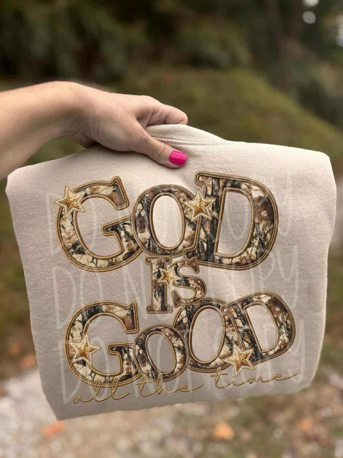 God Is Good All the Time Camo Letter Inspirational Faith Design