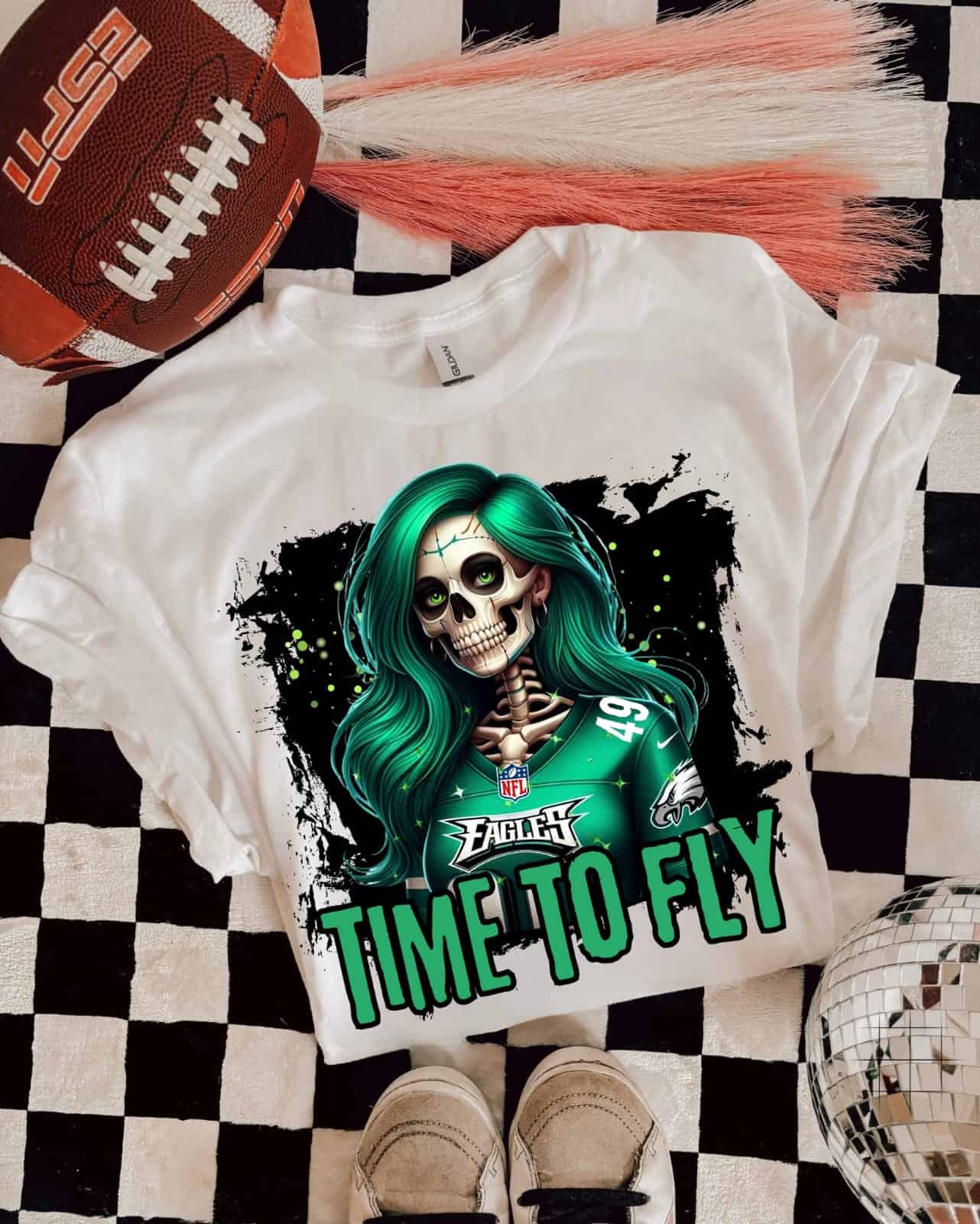 Green Haired Skull “Time to Fly” Football Eagles Game Day Design