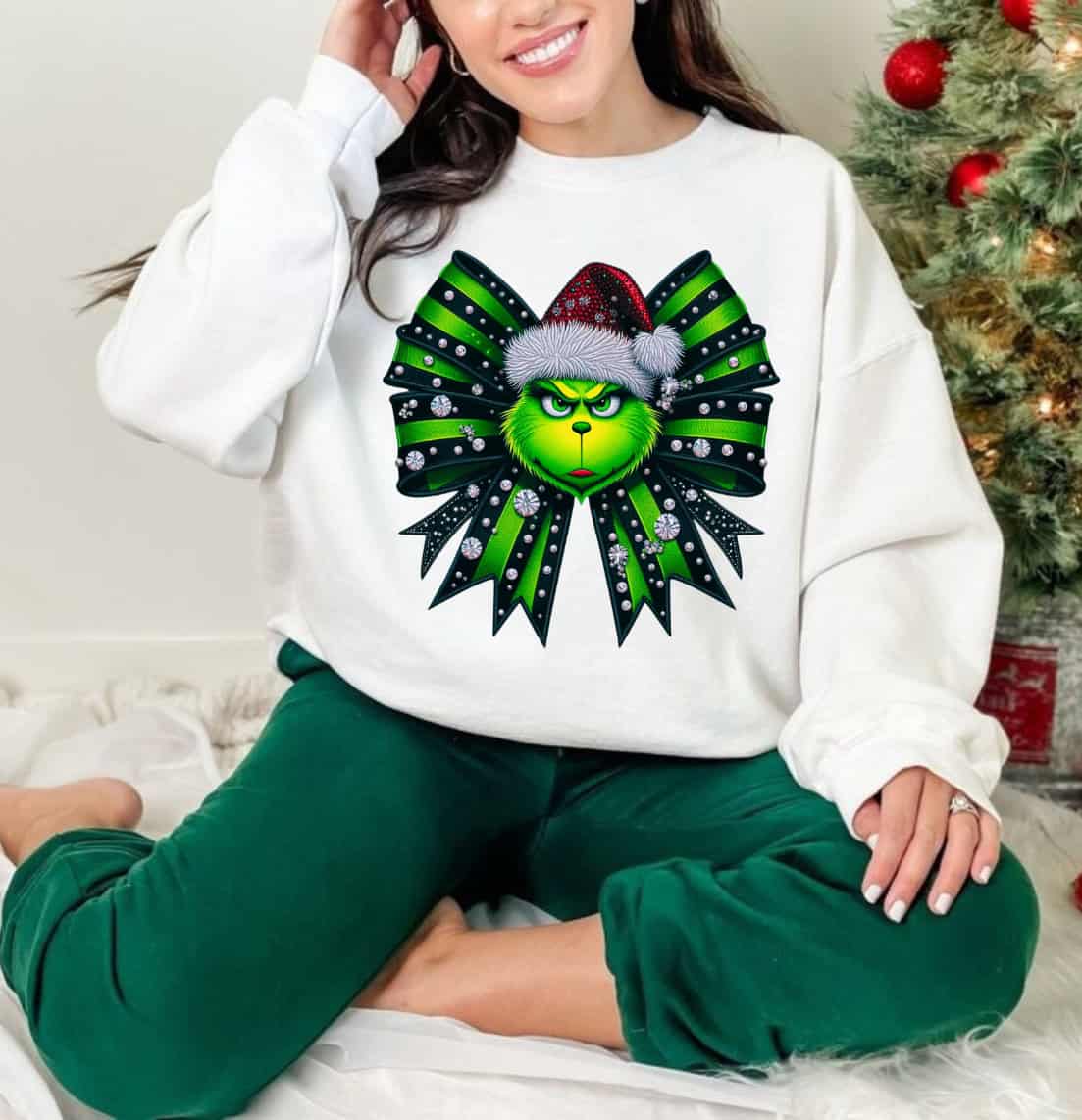 Grinch Bow Christmas Green Rhinestone Bow Grinch Face Holiday Design