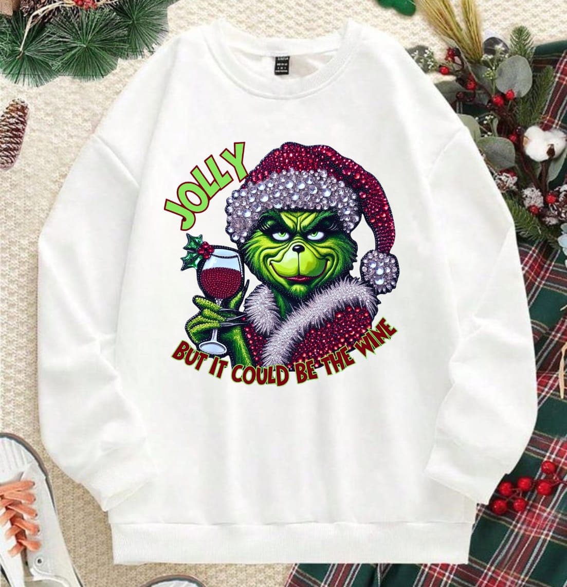 Jolly… But It Could Be the Wine Grinch Funny Sparkly Christmas Wine Design
