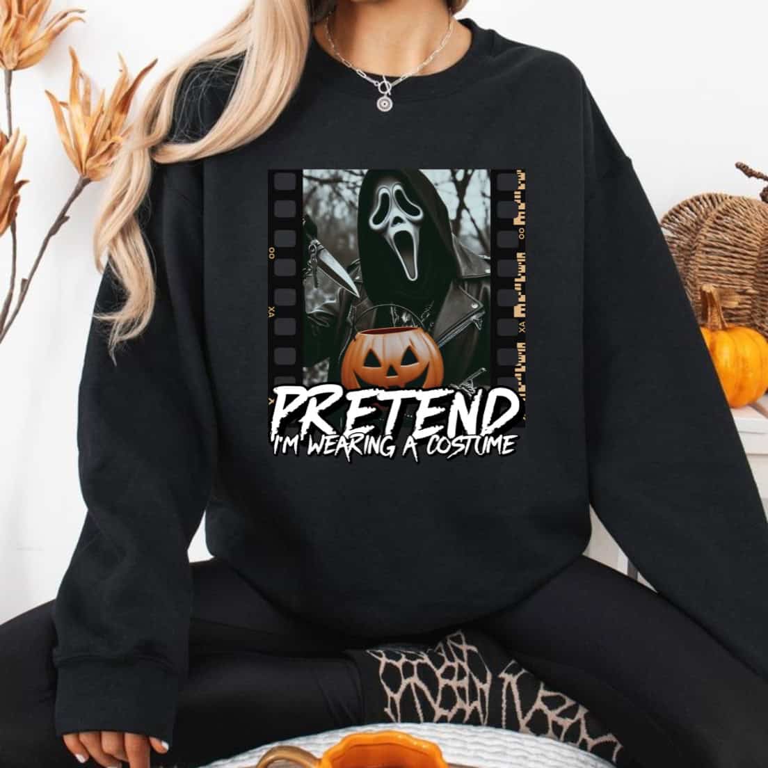 Pretend I’m Wearing a Costume Ghost Face Scary Mask Halloween Design