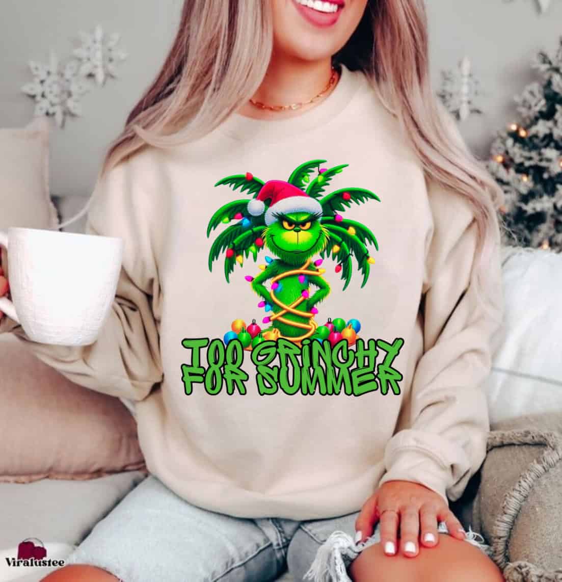 Too Grinchy for Summer Palm Tree Grinch Tropical Christmas Design