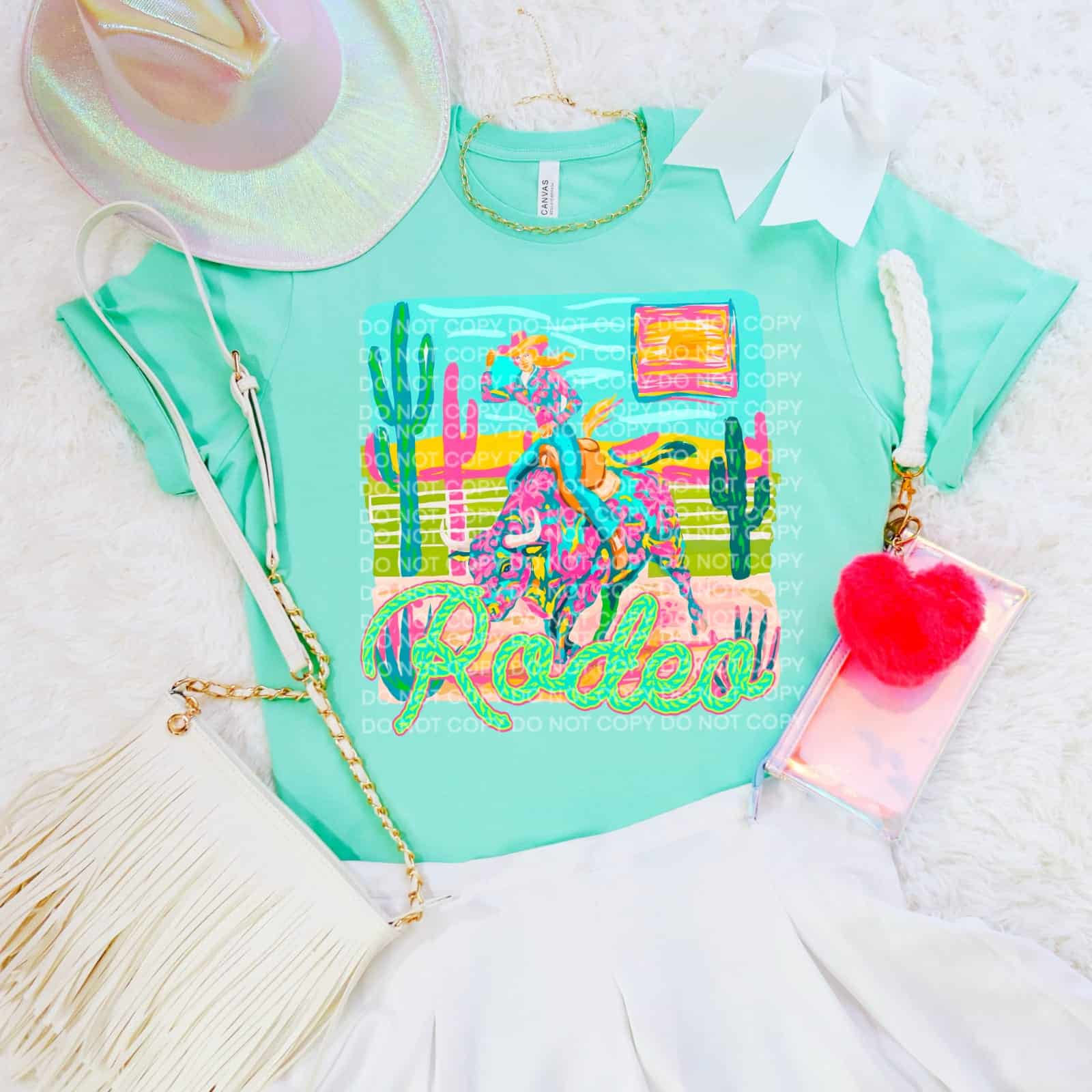 Vintage Rodeo Cowgirl Bright Cactus & Barrel Racing Scene Design